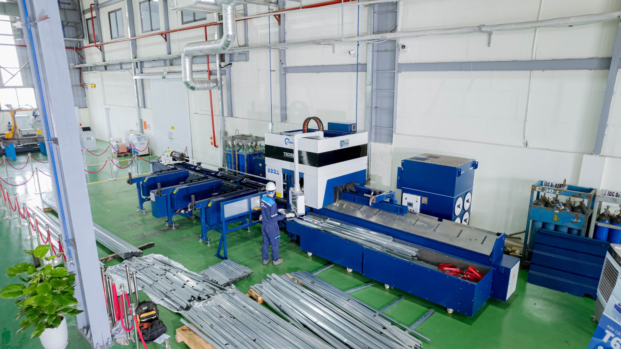 - Máy được trang bị các công nghệ hiện đại như: đầu cắt laser tích hợp cảm biến điện dung, nguồn laser mạnh mẽ, và phần mềm nesting thông minh giúp tối ưu hóa quá trình cắt, giảm thiểu vật liệu thừa và tăng hiệu suất hoạt động.